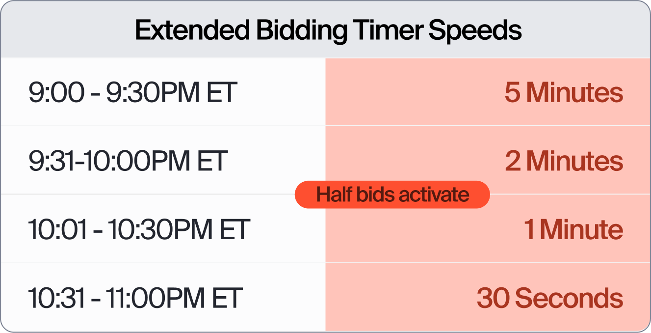 Extended Bidding is open to all — no qualifying bids are required. Once the timer begins, anyone can join in and place a bid at any time.